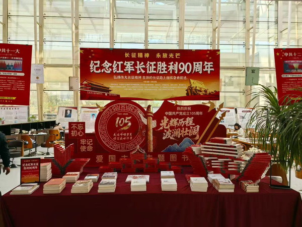 图书馆立足全环境立德树人根本任务,紧紧围绕中国共产党成立105周年、红军长征胜利90周年,结合第31个“世界读书日”、“全民阅读活动周”等节点,于二楼大厅推出爱国主义教育主题图书展,激励师生铭记历史、缅怀先烈、传承精神、担当作为。